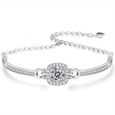 925 Sterling Silvery 1 Carat Moissanite Square Bag Bracelet, Suitable for Daily Holiday Party Date Vacation Wear, Birthday Anniversary Valentine's Day Carnival Easter And Other Jewelry Gifts, with Gift Box About 4g