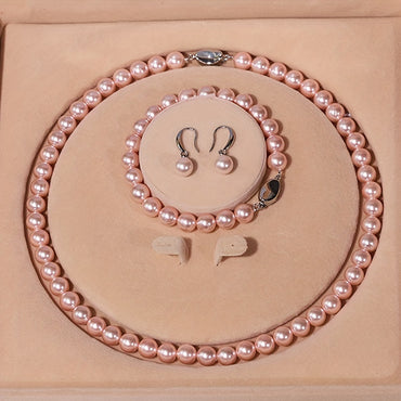 925 Sterling Silvery Freshwater Cultured Pearl Necklace Set with Amazing Bracelet and Earrings Jewelry Set - Gift for Others, Banquet, Party, Autumn and Winter Sweater Accessories