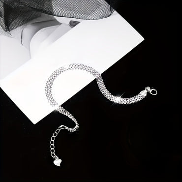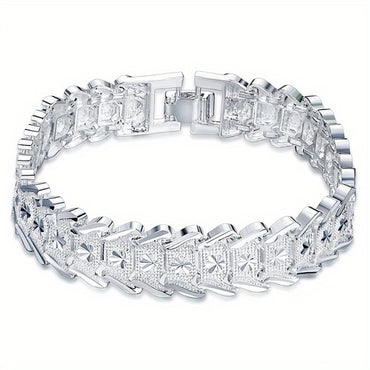 [S925 Sparkling Mesh Embossed Jewelry] 1pc S925 Sterling Silvery Chain Plated Bracelet, Mesh Embossed Patterned Bracelet, Sparkling Hand Jewelry for Men And Women, 5.2 Grams/ 0.18 Ounces, Christmas, Valentine's Day Gift