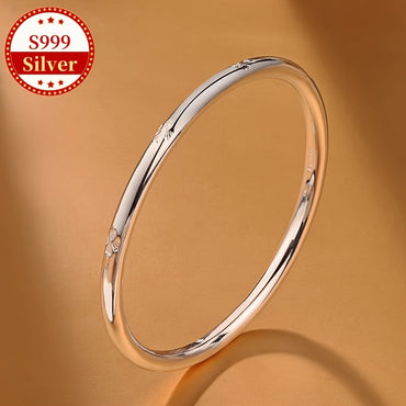 1pc Elegant 999 Sterling Silver Bracelet for Women, Cute and Simple Style, Daily Wear, Gift for Valentine'S Day, All-Season Versatile Jewelry, 21g