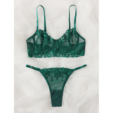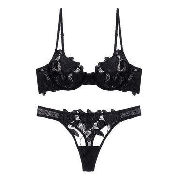 Sexy Underwear Women Three Dimensional Embroidered Mesh Stitching Ultra Thin with Steel Ring Push up Bra Set