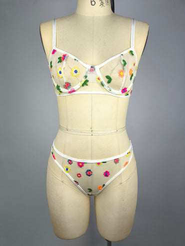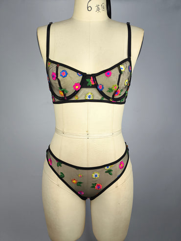 Fabric: Nylon Pattern: Floral Element: Embroidery,Lace/Tulle/Fishnet Product Type: Bras & Panty Sets Main Composition: Nylon Season: Seasonless F00200359