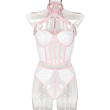 Sexy Suit Mesh Strap Stitching Complex Heavy Craft Metal Halter