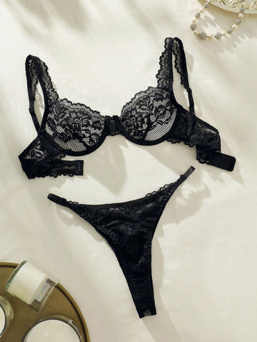 Floral Lace Harness Underwire Lingerie Set, Bra & Panty Set Lingerie Set>Blacksexy Underwear Setpanty And Bra Setunderwear And Bra Setlingerie 2 Piece Set
