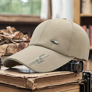 • Sporty Beige Baseball Cap for Men with Extended Brim & "SPORT" Visor - Durable Acrylic, Casual Outdoor Hat, Ideal Gift for Father's Day/Christmas/Thanksgiving