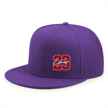 • Adjustable Snapback Baseball Cap with "23" Logo - Sun-Protective, Casual Streetwear Style in Black, Green, Purple, Gray, Red - Polyester, Hand Washable for Outdoor Fashion, Baseball Cap