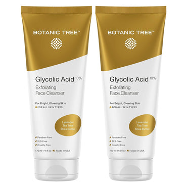Botanic Tree Glycolic Acid Face Wash, Exfoliating Facial Cleanser and Scrub, 10% Glycolic Acid, AHA and Salicylic Acid, 6 fl. oz