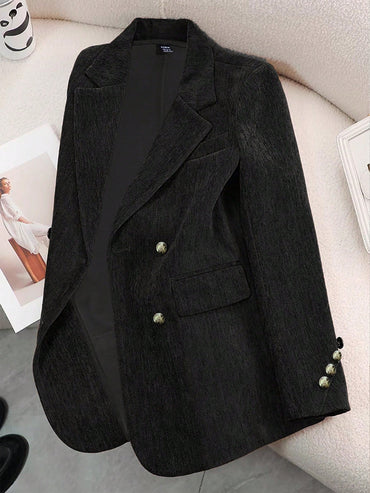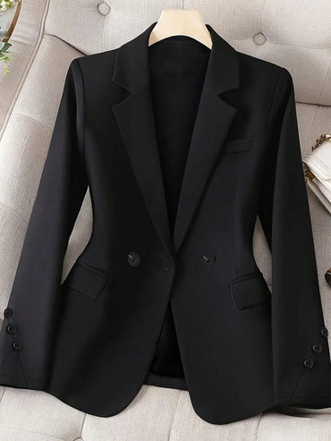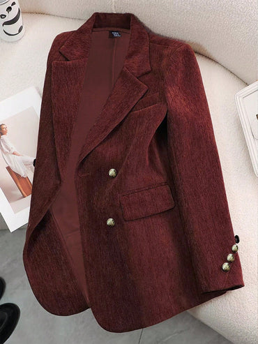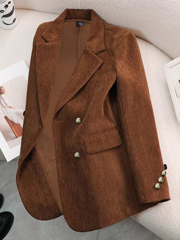 Raffinéa Women Spring And Autumn Casual Solid Color Double-Breasted Suit Jacket