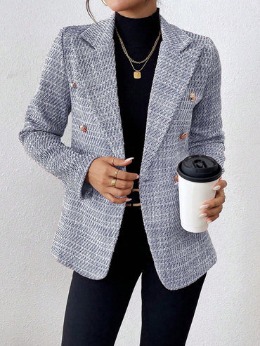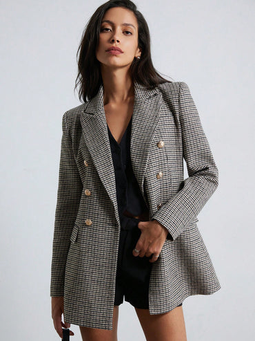 Aveloria Modichic Business Style Lapel Long Sleeve Plaid Double-Breasted Blazer Jacket