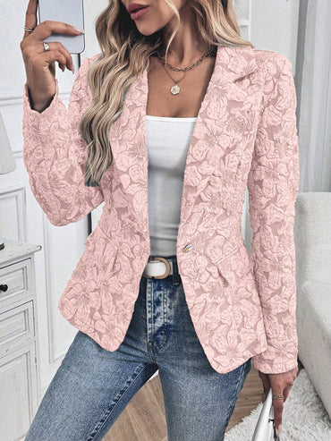Clasi Women Floral Print Single-Button Fitted Elegant Long Sleeve Suit Jacket