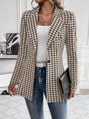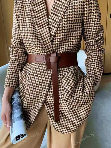 Clasi Women's Houndstooth Check Waist Slimming Blazer Jacket