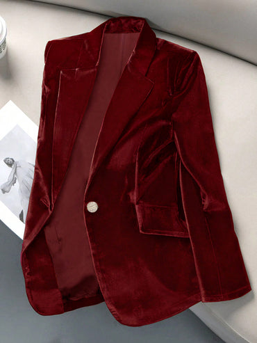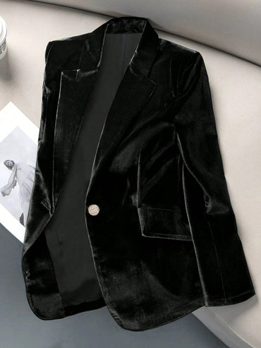 Women's Elegant Casual Velvet One-Button Long Sleeve Blazer Jacket