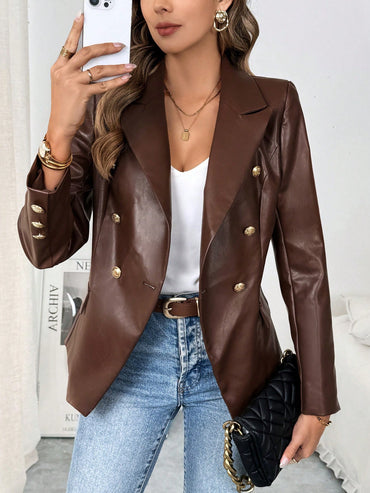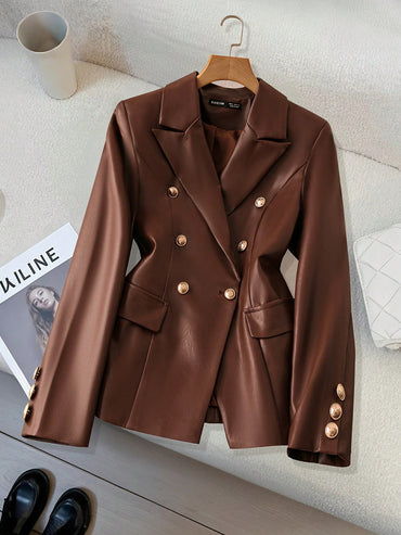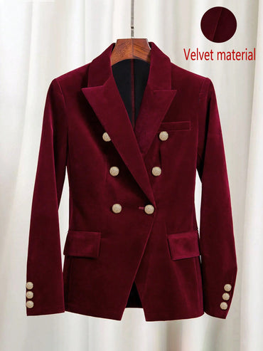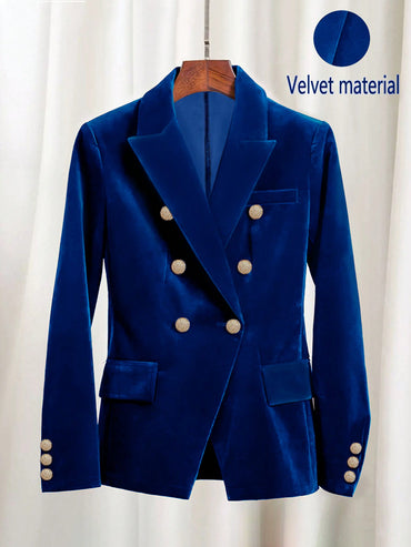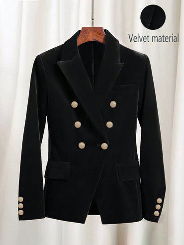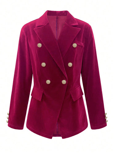 Women's Elegant Commuter Velvet Double-Breasted Long Sleeve Suit Jacket, Autumn/Winter