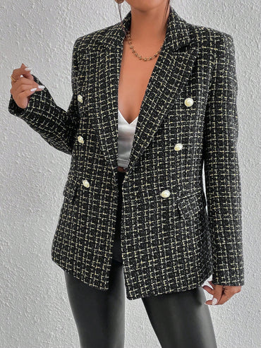Aveloria Rosie Plaid Print Double Breasted Blazer Workwear