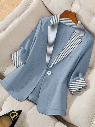 Women's Casual Fashion Elegant Office Versatile Solid Thin Blazer Jacket