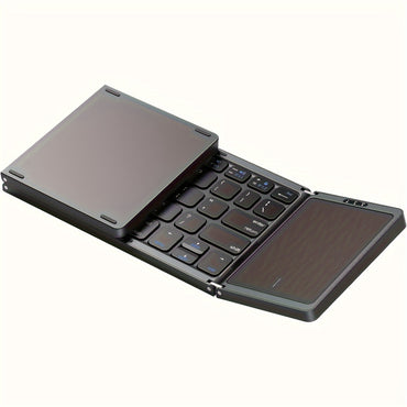 Clavier pliable à trois volets avec pavé tactile, clavier sans fil portable multi-appareils (synchronisation jusqu'à 3 appareils), clavier de poche de voyage rechargeable, clavier pliable pour tablettes Android IOS Windows
