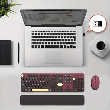 Clavier et Souris Sans Fil, Combo de 104 Touches de Taille Complète 2.4 GHz avec Touches Colorées, Récepteur USB Plug and Play, pour Windows, PC, Ordinateur Portable, Bureau (Thé au Lait)