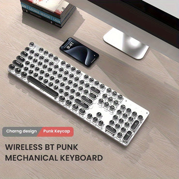 Clavier Mécanique Steampunk EWEADN TK950 - 104 Touches en Métal, Commutateurs Bleus, Rétroéclairage Blanc, Design Ergonomique, Triple Mode Sans Fil (Sans Fil/2.4G/Filaire) avec Charge Type-C, Compatible avec Windows/Mac, Idéal pour le Jeu & le Bureau, EWE