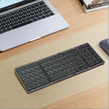 Clavier Sans Fil Ultra Mini JOMAA - Pliable, Rechargeable, Sans Fil 3.0, Alliage d'Aluminium, Design Compact pour Android, Windows Tablets & Smartphones, Connectivité 3 Appareils, Support Intégré, Portable & Léger