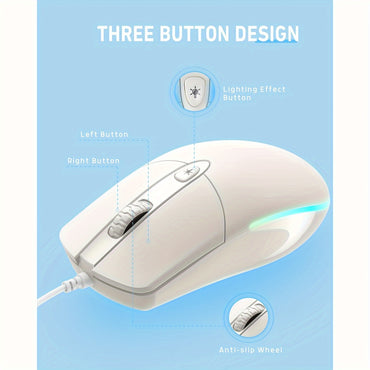 Mouse Filaire Optique USB Compacte avec Éclairage LED - Antidérapante Givrée, Conception pour Droitiens pour une Expérience de Jeu et de Bureau Améliorée, Compatible Windows 10