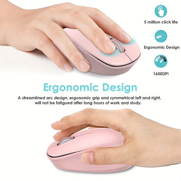 Mouse Compacte Ergonomique Rose pour Ordinateur Portable - 1600 DPI, Design Symétrique, Portable & Légère pour la Maison, le Bureau ou les Voyages, Alimentée par Batteries (Piles AA Non Incluses), Souris pour Ordinateur Portable