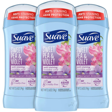 Suave Deodorant for Women, Sweet Pea & Violet – Invisible Solid Antiperspirant Deodorant Stick, 48H Protection, 2.6 Oz Ea (Pack of 3)