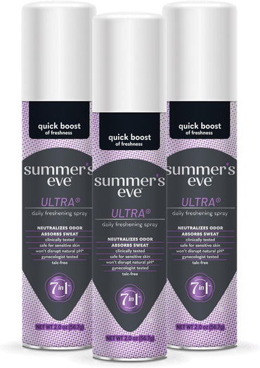Brand: Summer's EveItem Form: Freshening SprayScent: UltraMaterial Type Free: Talc FreeSpecial Feature: Odour protectionSummer's Eve Ultra daily feminine...