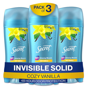 Secret Antiperspirant and Deodorant for Women, 48 Hr Invisible Solid Vanilla Scent 2.6 oz (Pack of 3)