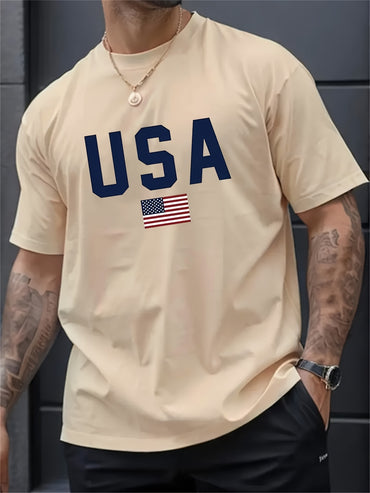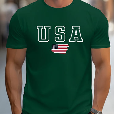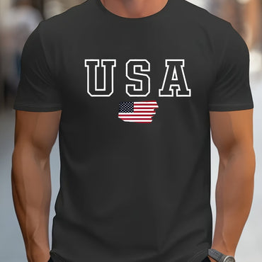 Men's Casual Versatile Summer T-shirt - USA & Flag Independence Day Themed Print Short Sleeve Crew Neck Comfy Tees As Gift