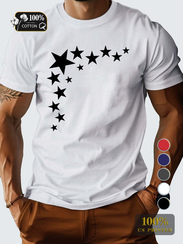Men's Comfortable Soft Cotton T-Shirt with Large Five-Pointed Star Print, Ideal for Casual Outings