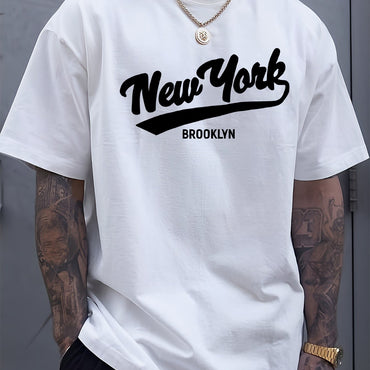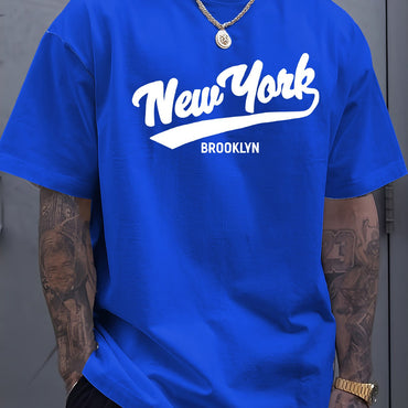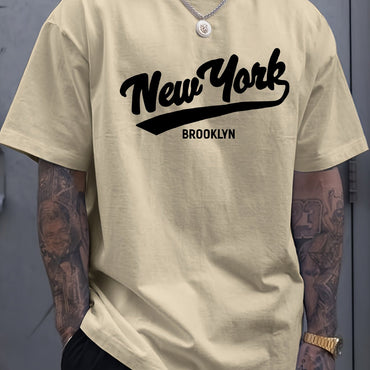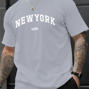 Men'S Trend USA New York Color Block Print, 100% Cotton, Comfortable Soft Short-sleeved T-shirt, Suitable For Casual Outing