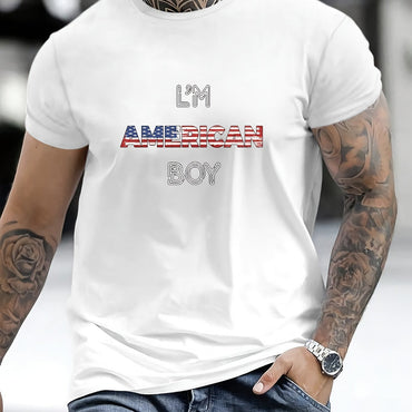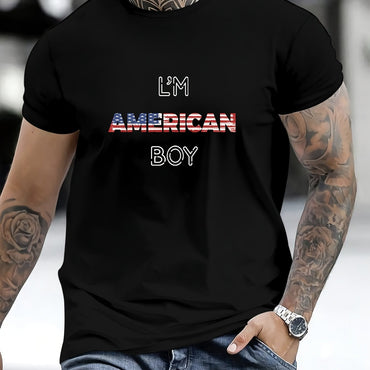 Men's Trend Creative Letters L'm American Boy Pattern Print Comfortable Cotton T-shirt