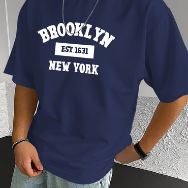 [Cotton Graphic Tee] Soft Cotton Men's Casual Graphic Tee - New York Brooklyn 1989 Print, Short Sleeve T-Shirt, Machine Washable, Summer Fashion