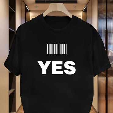 Men's Soft Cotton T-Shirt with YES Print - Comfortable, Casual Crew Neck Tee for Casual Attire