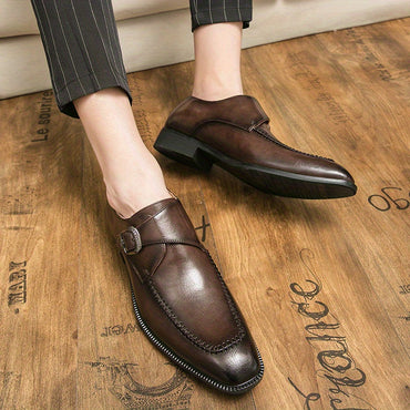 Comfy Men's Second Layer Cowhide Upper Solid Color Monk Shoes with Non Slip Rubber Sole