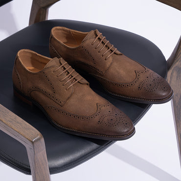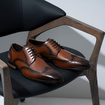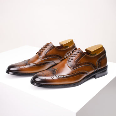 Men's Vintage Wingtip Oxfords - Handcrafted Genuine Leather Dress Shoes for Business & Casual, Brown Brogue Derby Shoes with Smooth Finish & Comfortable Lining, Vintage Shoes