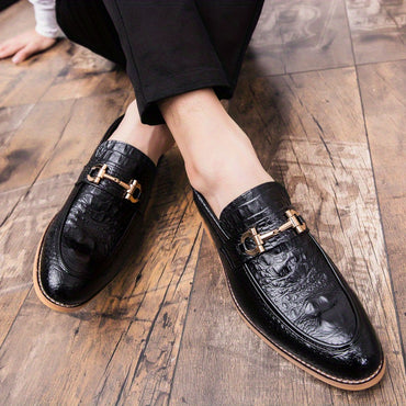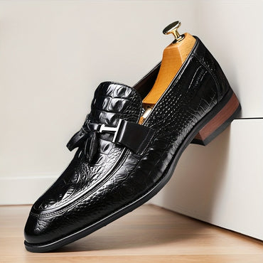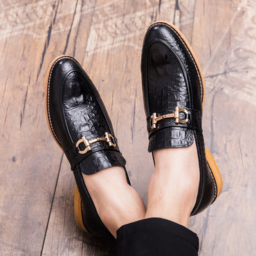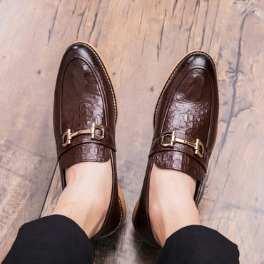 [Crocodile Leather Loafers] Genuine Leather Men's Slip-on Pointed-toe Large-size Loafers - British Business Casual Shoes And Also Formal Shoes, With Crocodile Texture On The Leather, Rubber Soles, And Suitable For All Four Seasons