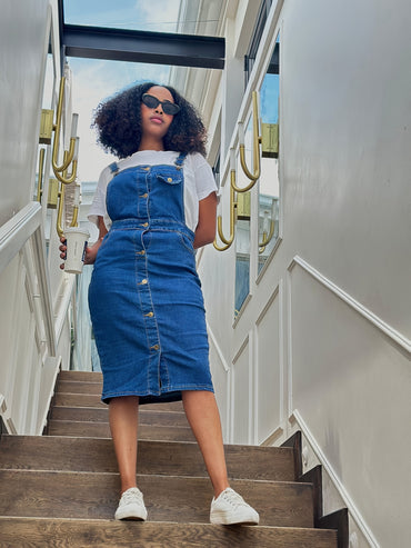 [Loose and Comfortable] Denim Overall Dress - Loose, Comfortable, Multiple Buttons - For Women, Commuting