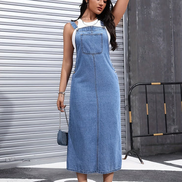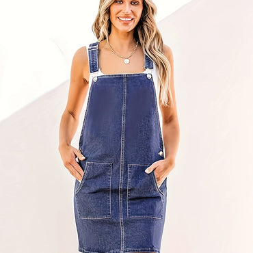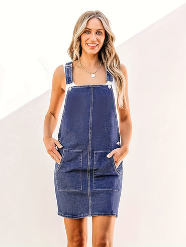 Ladies' Sexy Denim Overall Dress with Large Pockets