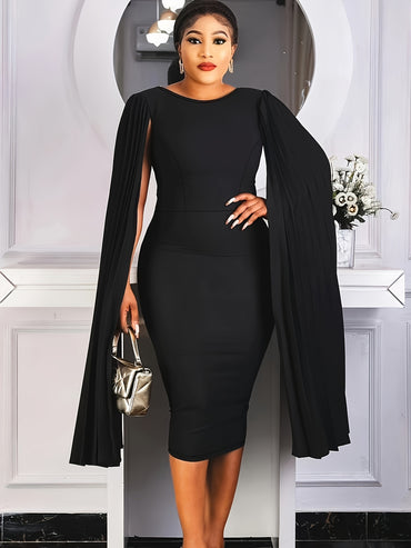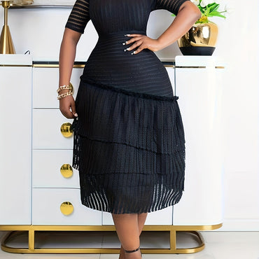 [Elegant Plus Size Dress] Plus Size Elegant Bodycon Midi Dress - Chic Crew Neck, Stretchy Polyester Blend, Machine Washable - Ideal for Work & Social Events