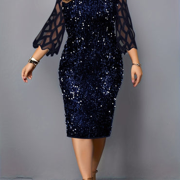 Valentine'S Day Women Sexy Elegant V-Neck High-Waisted Stitching Bright Sequins Bodycon Dress Plus Size Women Spring Summer Party Midi Dresses