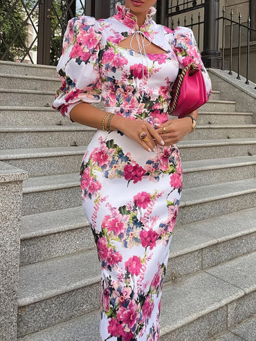 [Lantern Split Sleeve Dress] Women's Semi-High Collar Lantern Split Sleeve Dress - Spring and Summer