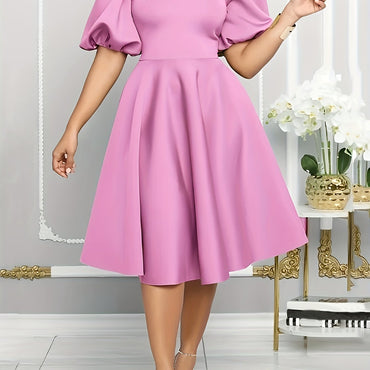Elegant Lavender Midi Dress for Women - Chic Knit Solid Color with Puff Sleeves, A-Line Silhouette, Machine Washable & Dry Cleanable, Round Neck, Non-Sheer, Lavender Dress