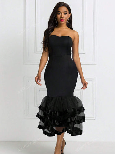 Sexy Strapless Mesh Bodycon Layered Mini Dress, For Birthday, Wedding Guest, Graduation, Dinner, Homecoming,