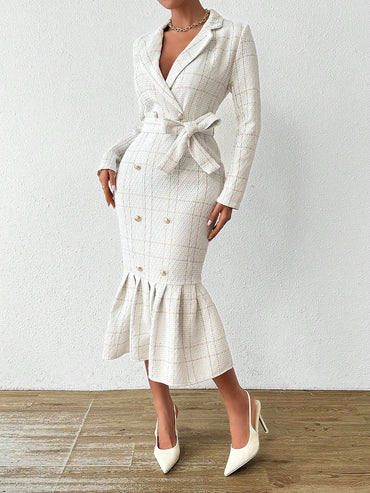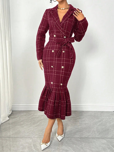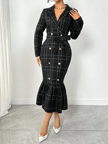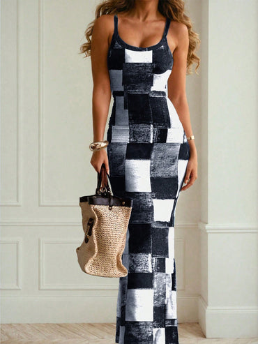 Raffinéa Women's Fashionable Grid Patterned Slim Fit Bodycon Dress Maxi Women Outfit