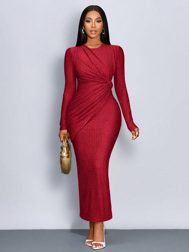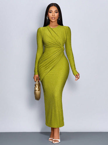SOLERSUN Solid Twist Front Bodycon Dress Maxi Women Outfit