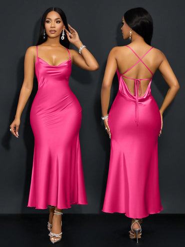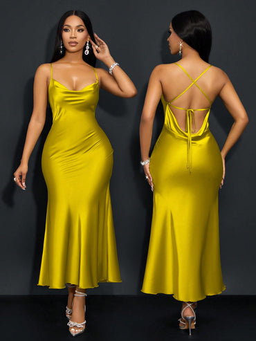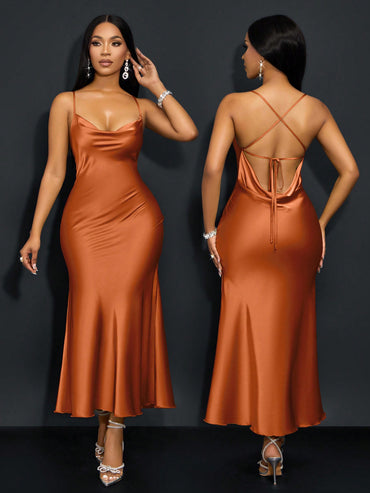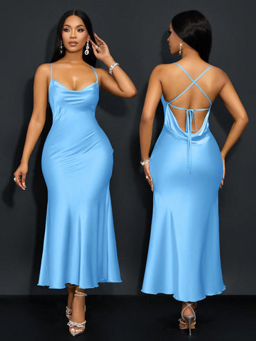 Details: Backless, Criss Cross, Knot Neckline: Spaghetti Strap Style: Sexy Type: Cami Waist Line: Natural Hem Shaped: Mermaid...