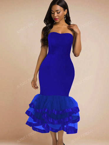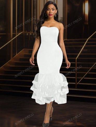 Details: Backless, Ruffle Hem, Tiered Layer, Zipper Neckline: Strapless Style: Party, Romantic, Sexy Type: Bodycon Waist Line: High...