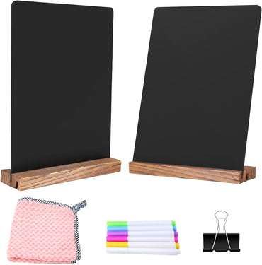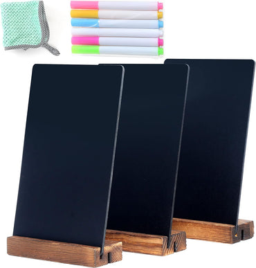 NEWNEWSHOW 3Pack 5.1x7.9 in Chalkboard Sign Double Sided with Wood Base Chalkboard Signs Erasable Message Board Sign with Wood Base for Shop Wedding Kitchen Home Party Decoration