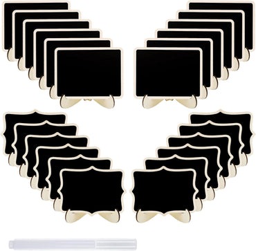 24 Pcs Small Chalkboard Labels with Easel Stand, Mini Chalkboard Signs, Wooden Blackboard for Table Numbers, Food Signs, Wedding Signs, Place Cards and Event Decoration, with 1 Liquid Chalk